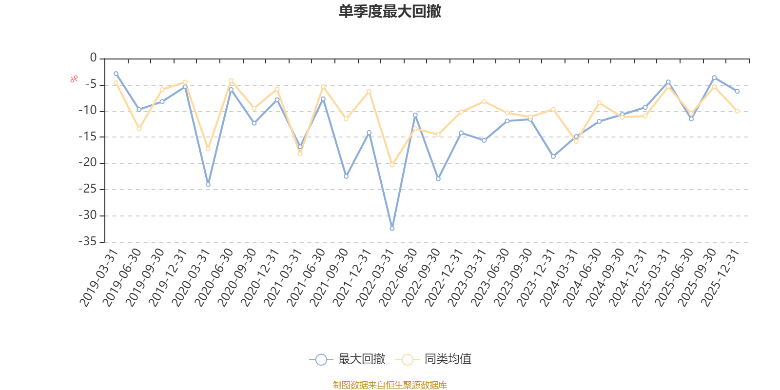 截至1月22日,基金近三年最大回撤为44.29%,同类可比基金排名218/254。单季度最大回撤出现在2022年一季度,为32.43%。