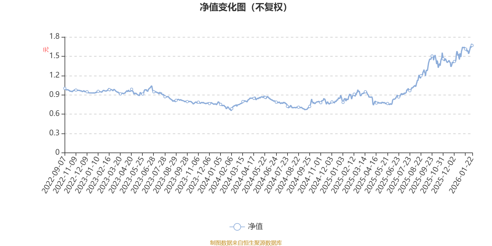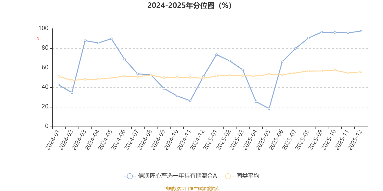 通过所选区间该基金净值增长率分位图,可以观察该基金与同类基金业绩比较情况。图为坐标原点到区间内某时点的净值增长率在同类基金中的分位数。