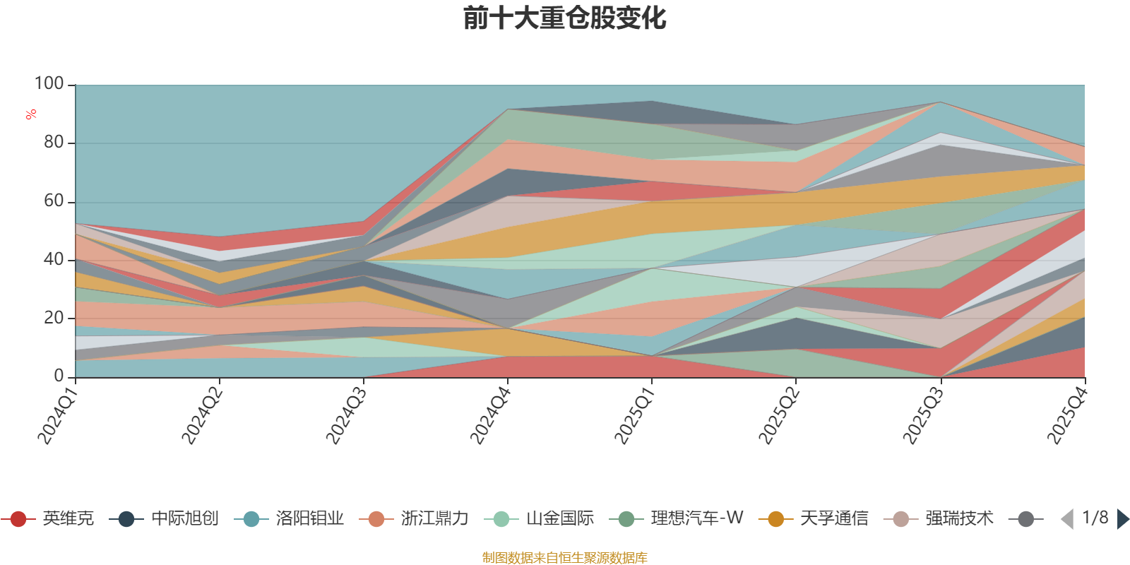 截至2025年四季度末,基金十大重仓股分别是中际旭创、英维克、新易盛、强瑞技术、凯格精机、南亚新材、生益电子、天孚通信、胜宏科技、鼎通科技。