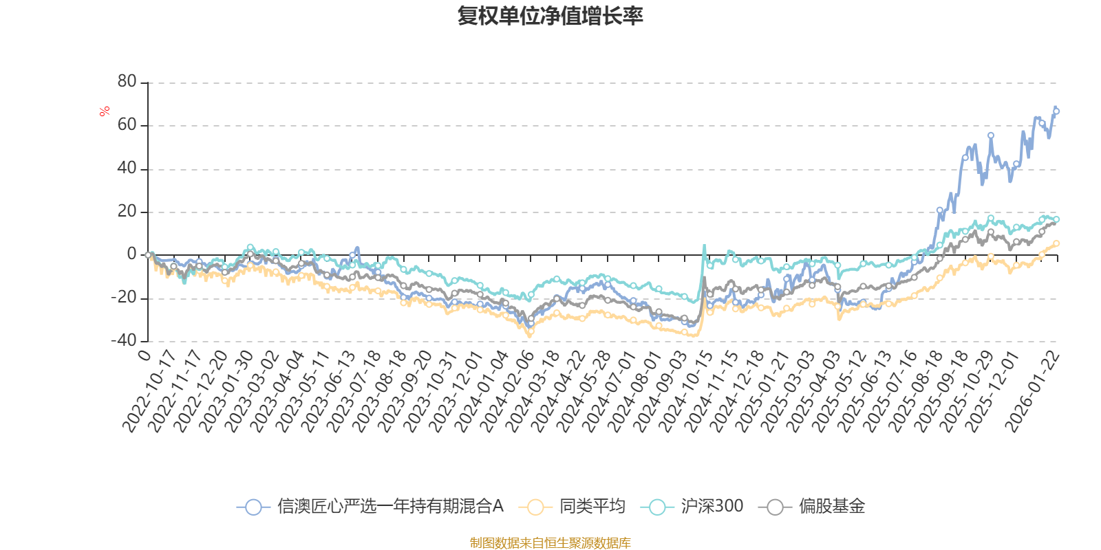 截至1月22日,信澳匠心严选一年持有期混合A近三个月复权单位净值增长率为21.06%,位于同类可比基金31/621;近半年复权单位净值增长率为72.94%,位于同类可比基金10/621;近一年复权单位净值增长率为82.80%,位于同类可比基金24/613;近三年复权单位净值增长率为75.36%,位于同类可比基金30/535。