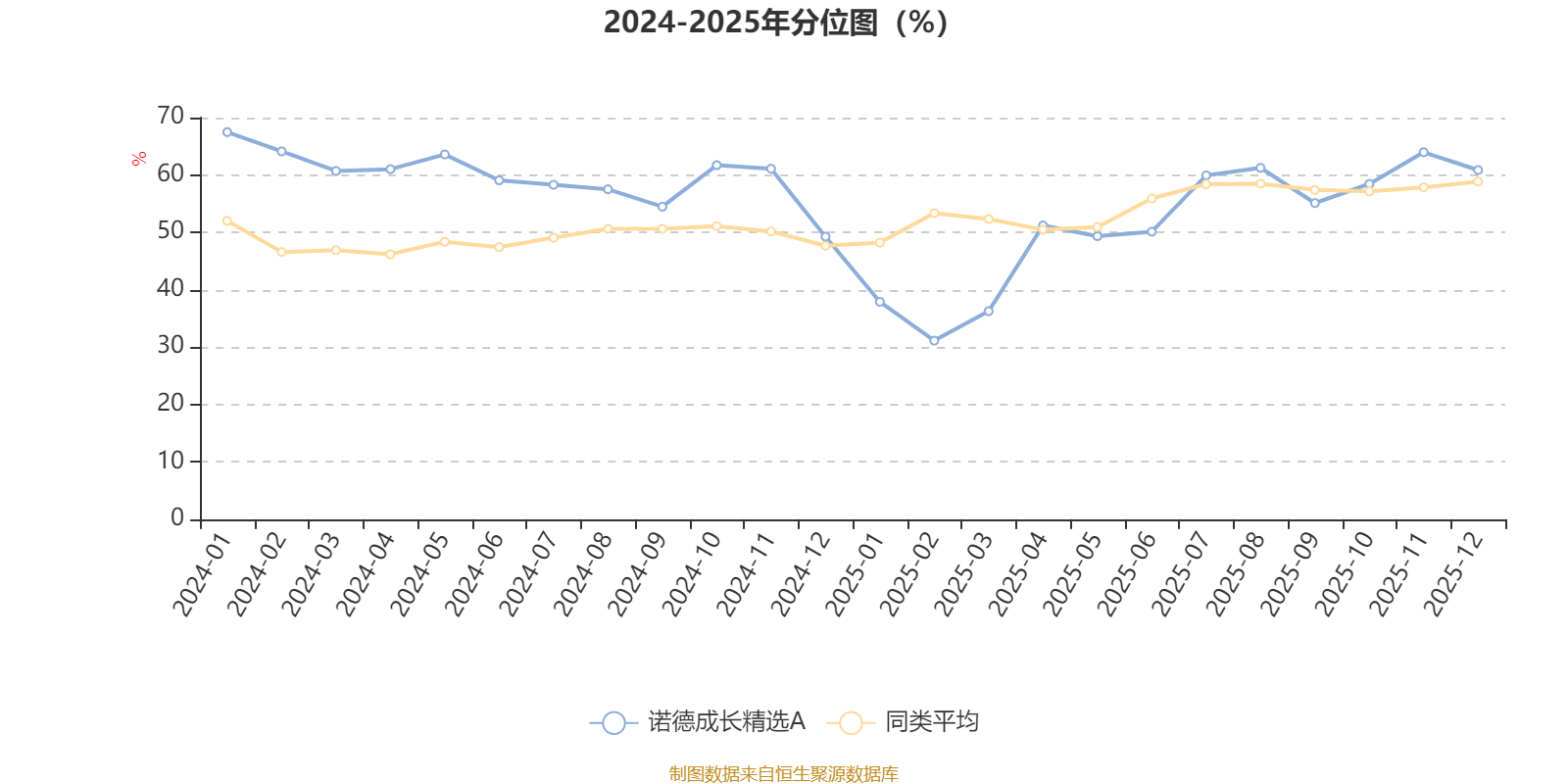 通过所选区间该基金净值增长率分位图,可以观察该基金与同类基金业绩比较情况。图为坐标原点到区间内某时点的净值增长率在同类基金中的分位数。