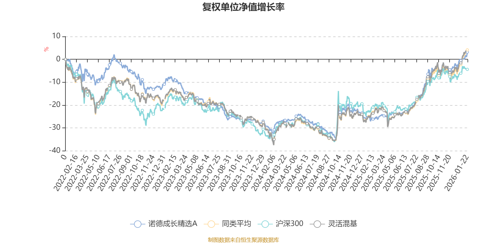 截至1月22日,诺德成长精选A近三个月复权单位净值增长率为8.18%,位于同类可比基金669/1286;近半年复权单位净值增长率为25.68%,位于同类可比基金532/1286;近一年复权单位净值增长率为37.20%,位于同类可比基金555/1286;近三年复权单位净值增长率为12.06%,位于同类可比基金743/1286。