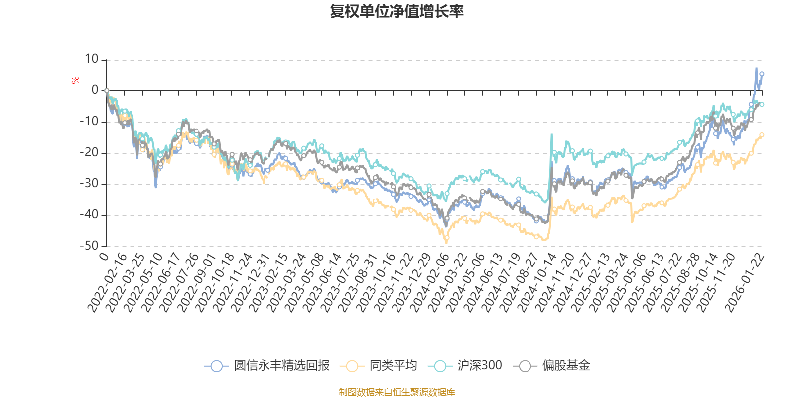 截至1月22日,圆信永丰精选回报近三个月复权单位净值增长率为22.08%,位于同类可比基金56/689;近半年复权单位净值增长率为39.86%,位于同类可比基金127/689;近一年复权单位净值增长率为50.25%,位于同类可比基金195/673;近三年复权单位净值增长率为34.18%,位于同类可比基金98/396。