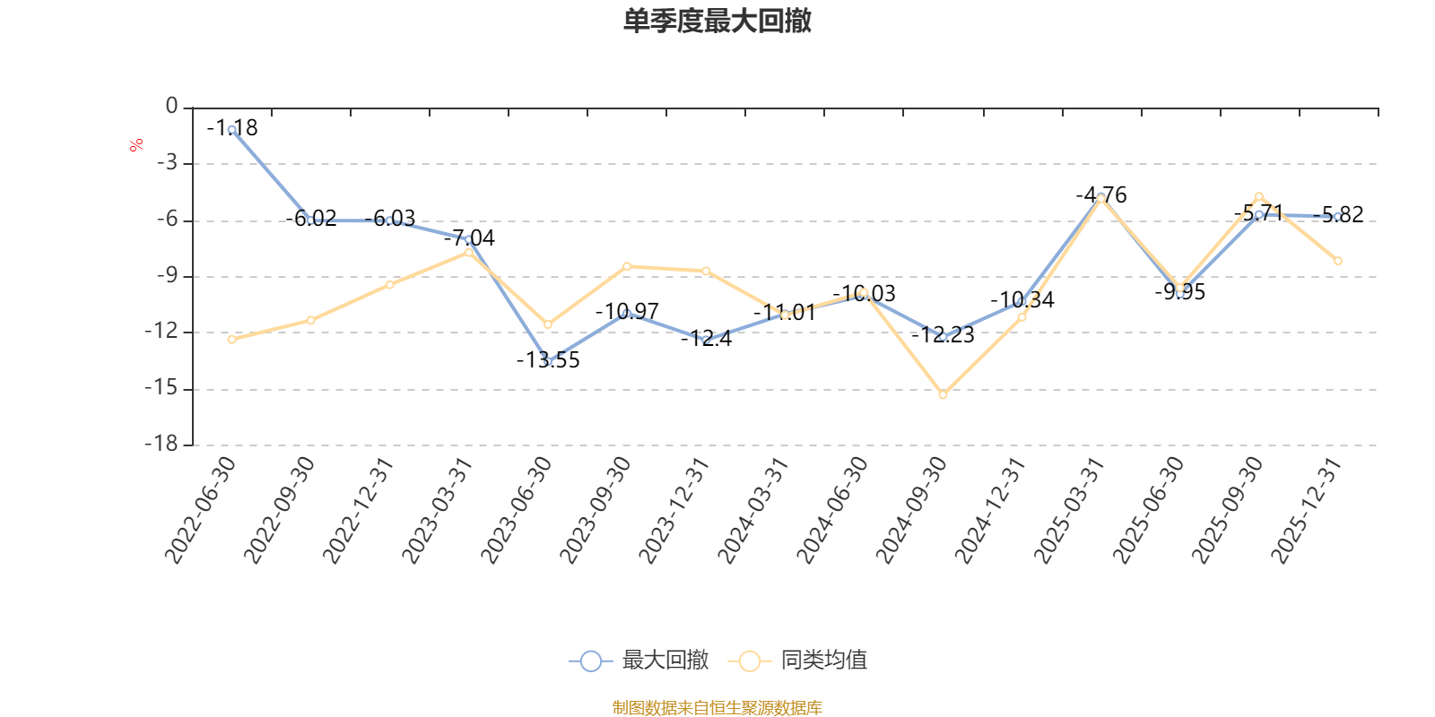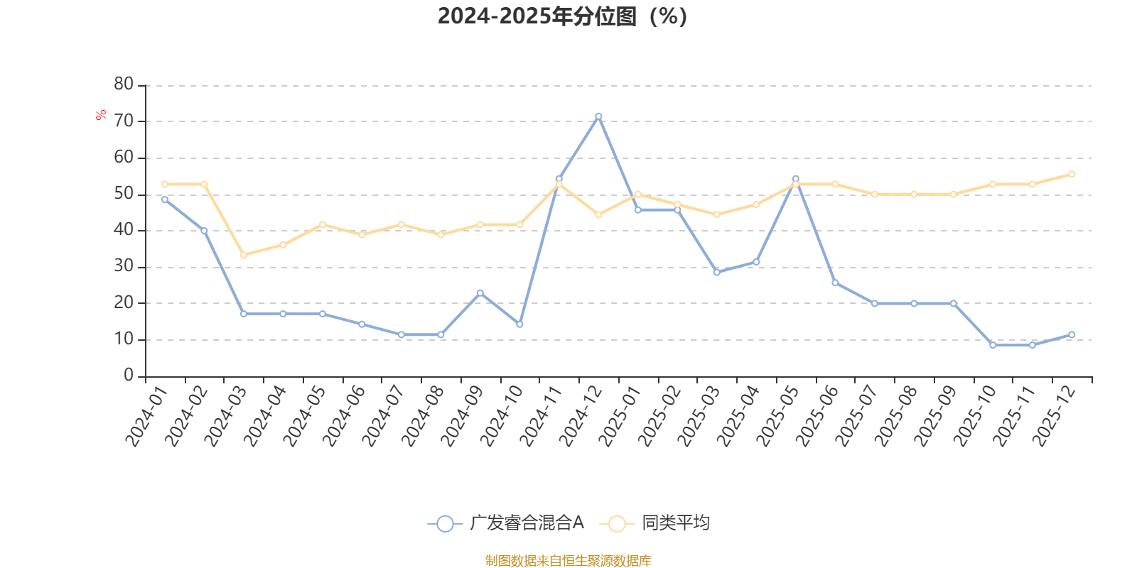 通过所选区间该基金净值增长率分位图,可以观察该基金与同类基金业绩比较情况。图为坐标原点到区间内某时点的净值增长率在同类基金中的分位数。