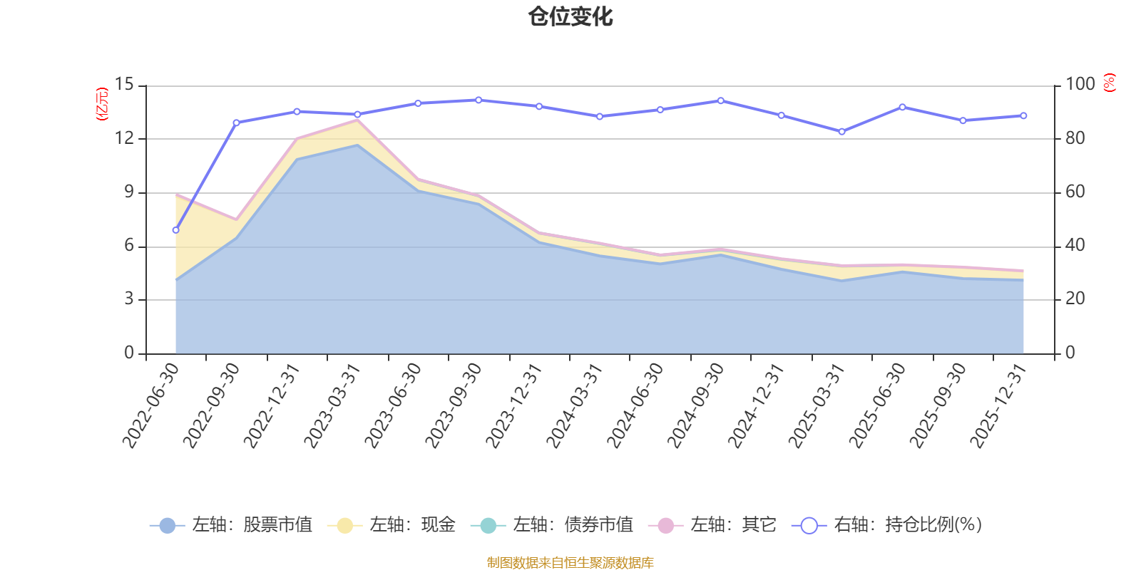 据定期报告数据统计,近三年平均股票仓位为90.21%,同类平均为86.41%。2023年三季度末基金达到94.59%的最高仓位,2022年上半年末最低,为46.11%。