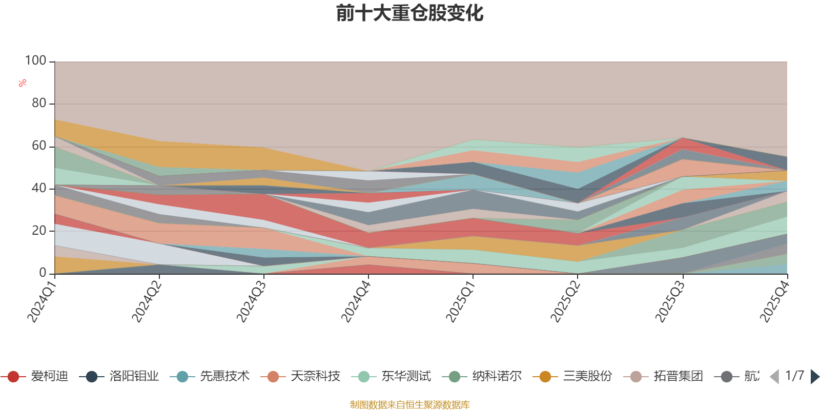 截至2025年四季度末,基金十大重仓股分别是尚太科技、新雷能、菲利华、英科医疗、先导智能、航发动力、路维光电、纳科诺尔、新宙邦、先惠技术。