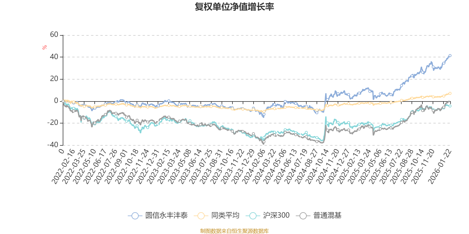 截至1月22日,圆信永丰沣泰近三个月复权单位净值增长率为11.99%,位于同类可比基金12/629;近半年复权单位净值增长率为23.85%,位于同类可比基金13/629;近一年复权单位净值增长率为34.76%,位于同类可比基金12/626;近三年复权单位净值增长率为43.12%,位于同类可比基金3/564。