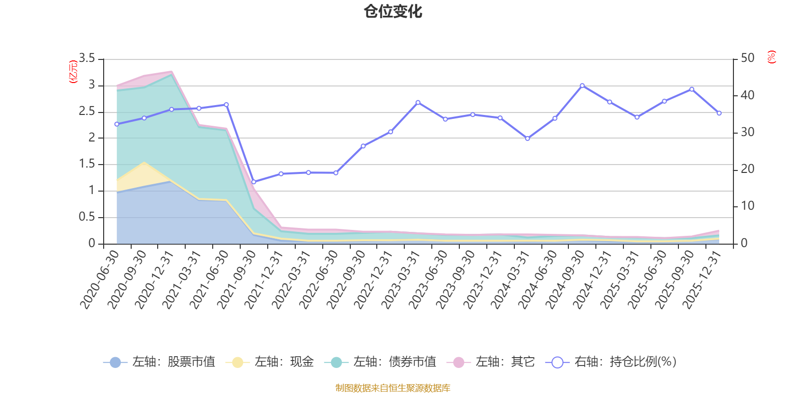 据定期报告数据统计,近三年平均股票仓位为36.22%,同类平均为19.2%。2024年三季度末基金达到42.8%的最高仓位,2021年三季度末最低,为16.77%。