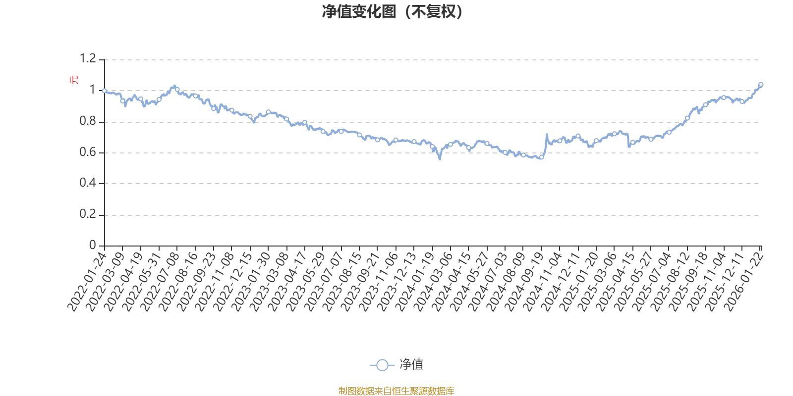该基金属于偏股混合型基金。截至1月22日,单位净值为1.039元。基金经理是王恒楠,目前管理4只基金。其中,截至1月22日,诺德量化先锋A近一年复权单位净值增长率最高,达54.35%;诺德新能源汽车A最低,为46.9%。