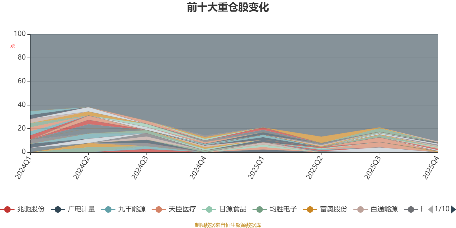 截至2025年四季度末,基金十大重仓股分别是唐源电气、七一二、江苏有线、雪迪龙、晶品特装、赣粤高速、三六零、菜百股份、菲达环保、博实结。
