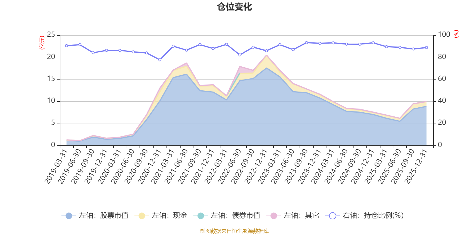 据定期报告数据统计,近三年平均股票仓位为90.66%,同类平均为86.12%。2023年三季度末基金达到93.16%的最高仓位,2020年末最低,为77.55%。