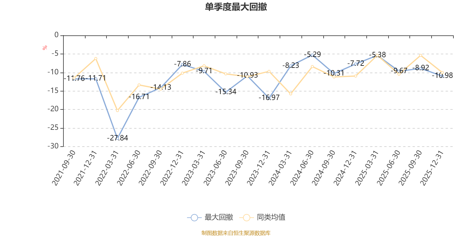 截至1月22日,基金近三年最大回撤为32.65%,同类可比基金排名102/254。单季度最大回撤出现在2022年一季度,为27.84%。