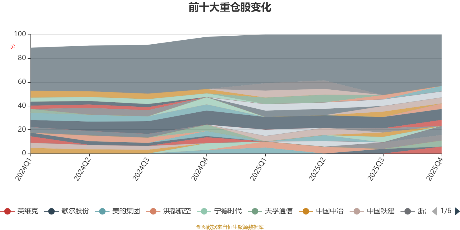 基金管理人在四季报中表示,操作方面,我们认为在 AI 行业持续迭代的过程中,国内半导体的需求持续提升。同时随着模型的记忆能力提升,对存储需求有较大的促进作用,我们增加了存储的配置。存储的供需结构的偏紧也让价格维持在高位,国内的存储半导体公司也明显受益。在当前中国处于产业结构升级的过程中,中小市值公司会有持续的机会,我们将对有竞争力的公司持续关注并且重点配置。