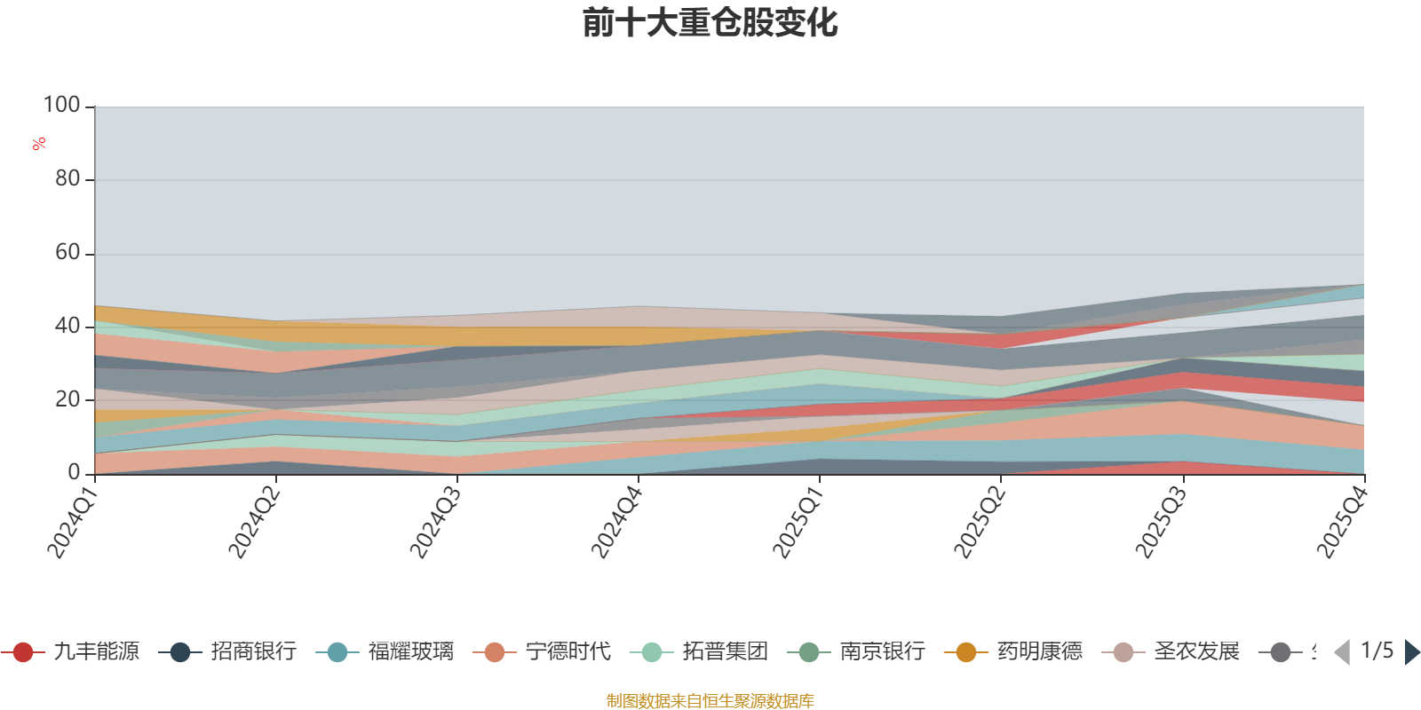 截至2025年四季度末,基金十大重仓股分别是三环集团、福耀玻璃、宁德时代、宏发股份、杰瑞股份、豪迈科技、宁波银行、三一重工、甘李药业、宇通客车。
