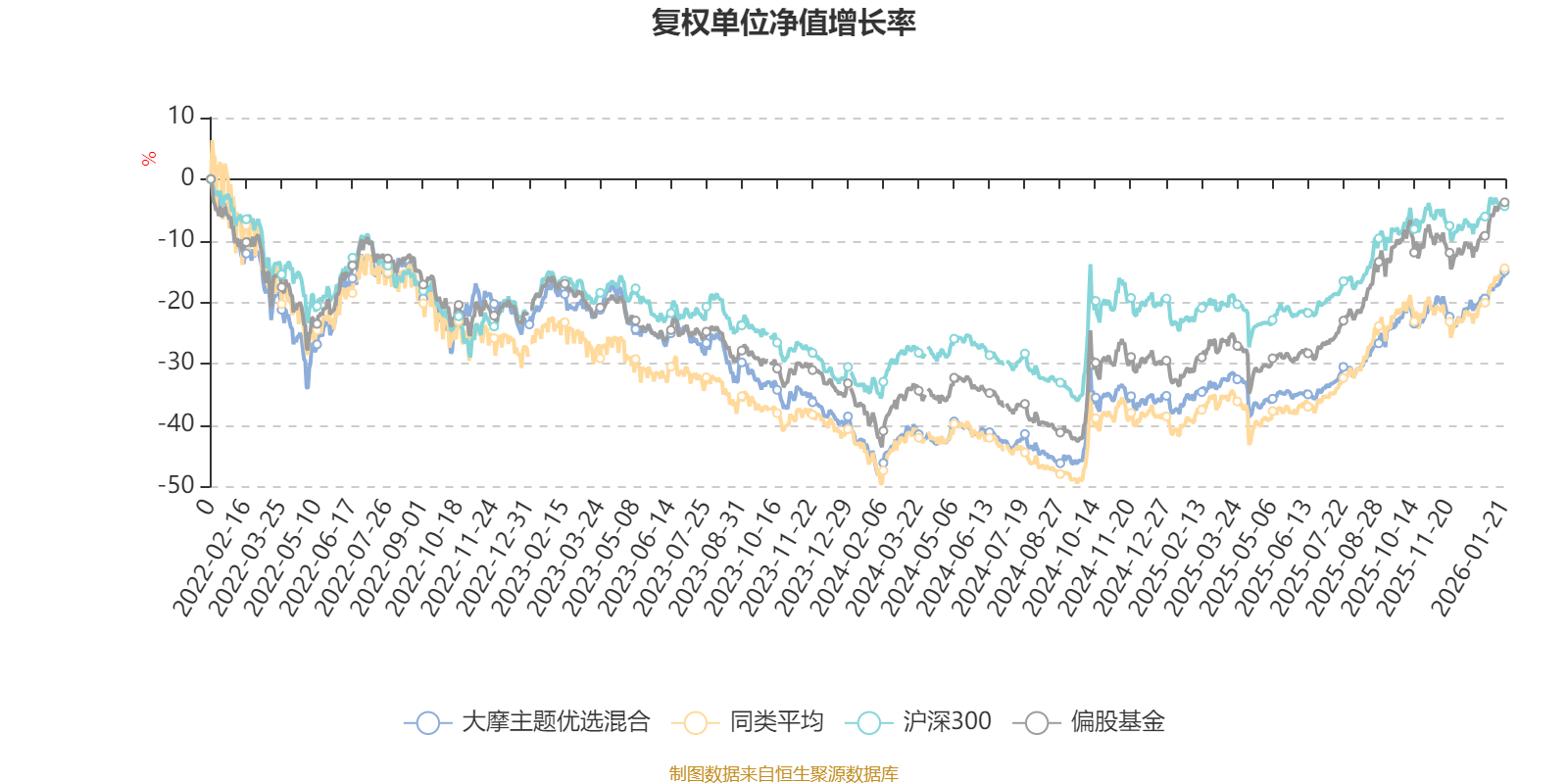 截至1月21日,大摩主题优选混合近三个月复权单位净值增长率为10.04%,位于同类可比基金255/621;近半年复权单位净值增长率为23.30%,位于同类可比基金344/621;近一年复权单位净值增长率为30.72%,位于同类可比基金415/613;近三年复权单位净值增长率为3.14%,位于同类可比基金382/535。