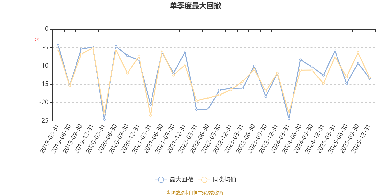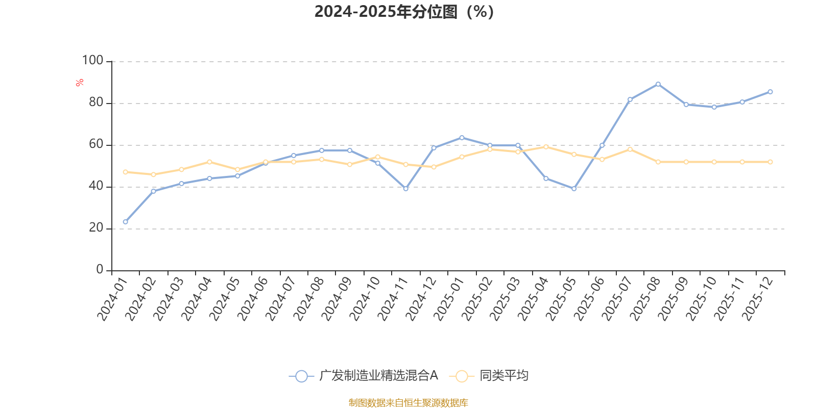 通过所选区间该基金净值增长率分位图,可以观察该基金与同类基金业绩比较情况。图为坐标原点到区间内某时点的净值增长率在同类基金中的分位数。