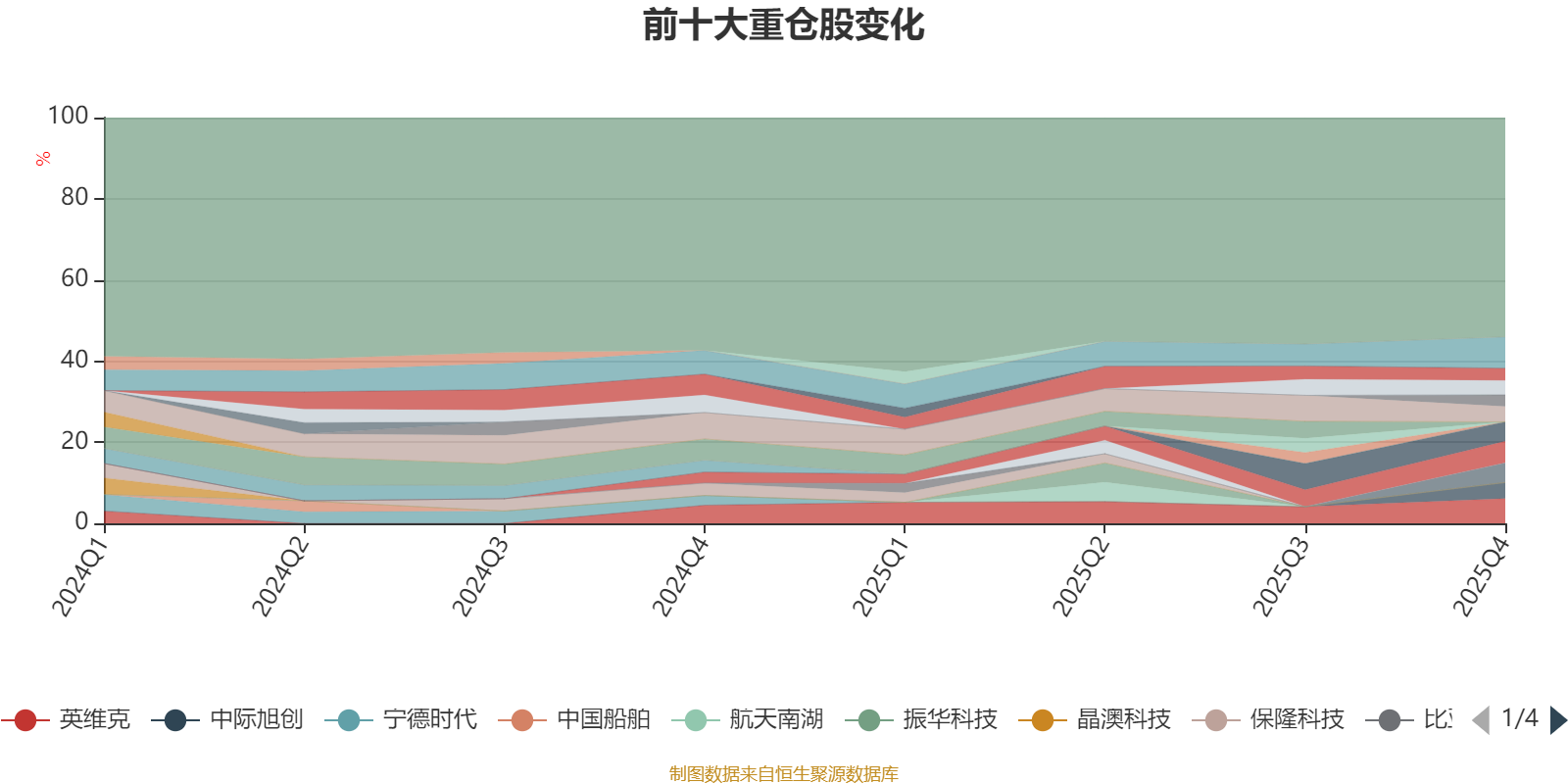 截至2025年四季度末,基金十大重仓股分别是菲利华、英维克、新易盛、长盈精密、寒武纪、中际旭创、欣旺达、东山精密、春风动力、阳光电源。