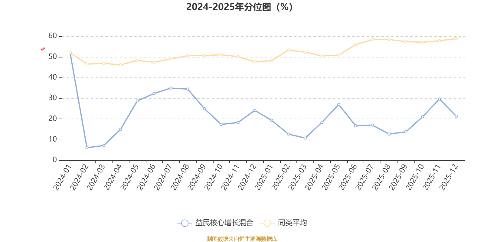 通过所选区间该基金净值增长率分位图,可以观察该基金与同类基金业绩比较情况。图为坐标原点到区间内某时点的净值增长率在同类基金中的分位数。