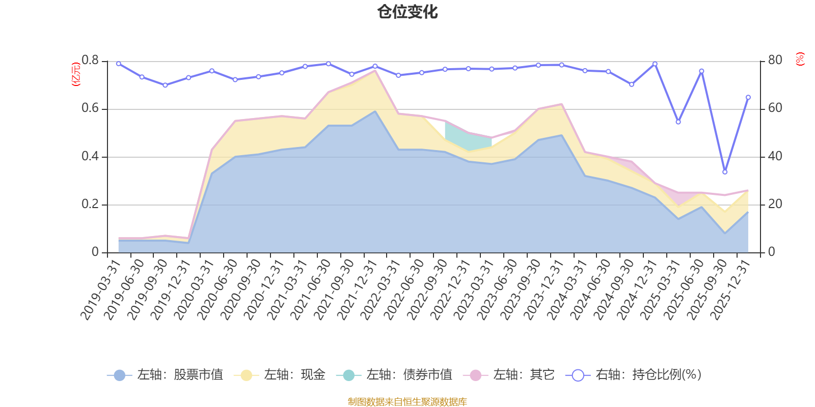 据定期报告数据统计,近三年平均股票仓位为70.01%,同类平均为72.57%。2019年一季度末基金达到78.91%的最高仓位,2025年三季度末最低,为33.69%。
