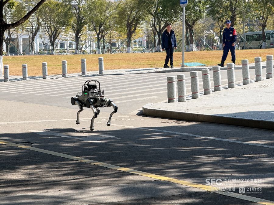 机器狗在校园里日常巡逻,摄/彭敏静