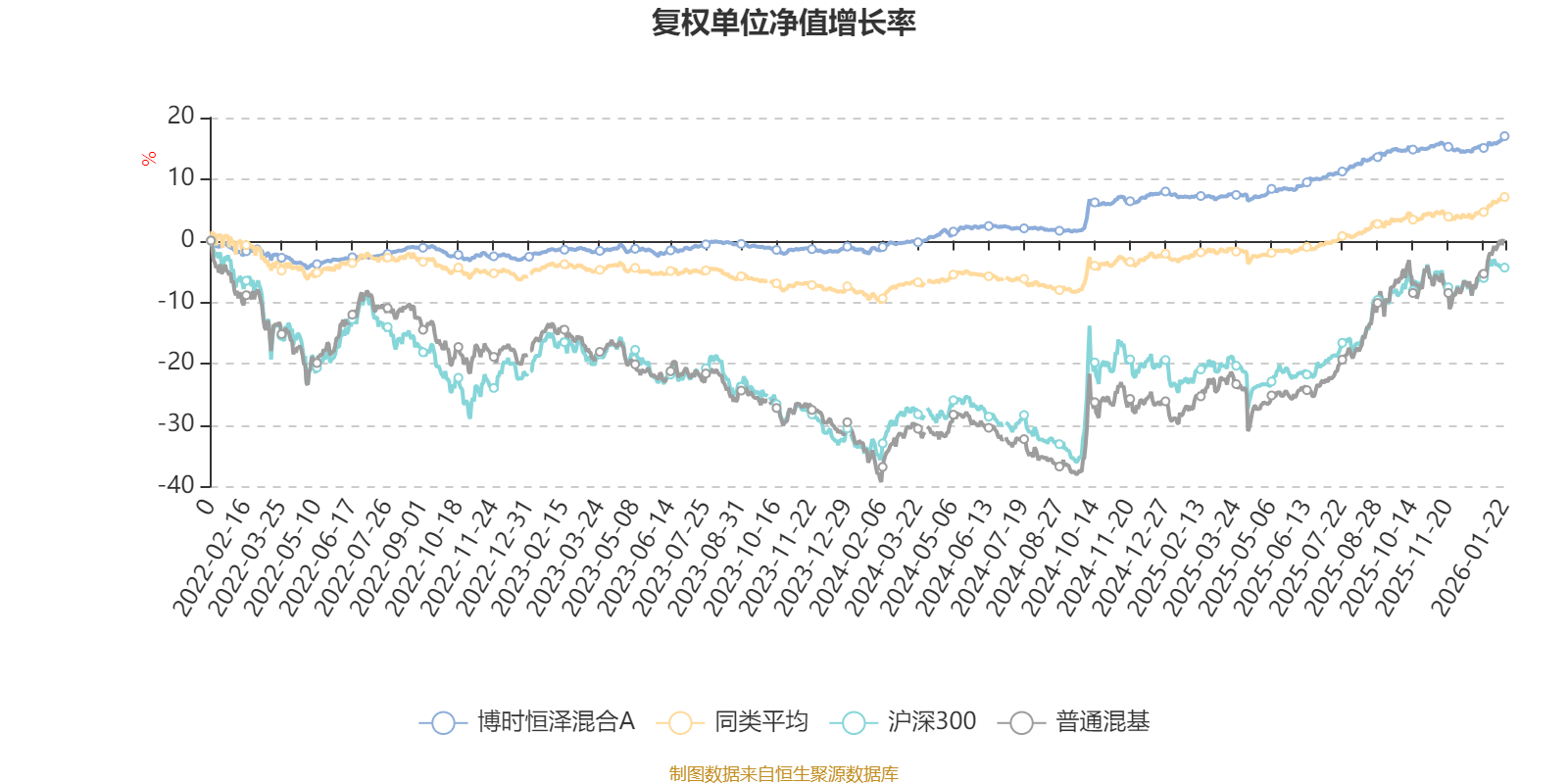截至1月22日,博时恒泽混合A近三个月复权单位净值增长率为1.77%,位于同类可比基金379/629;近半年复权单位净值增长率为5.17%,位于同类可比基金255/629;近一年复权单位净值增长率为9.22%,位于同类可比基金241/626;近三年复权单位净值增长率为18.95%,位于同类可比基金101/564。
