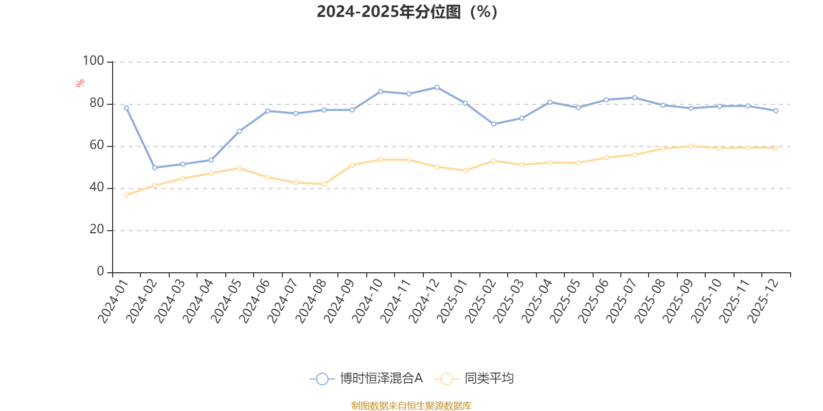 通过所选区间该基金净值增长率分位图,可以观察该基金与同类基金业绩比较情况。图为坐标原点到区间内某时点的净值增长率在同类基金中的分位数。