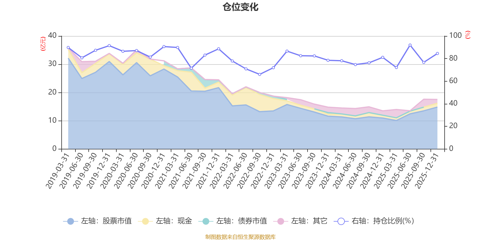 据定期报告数据统计,近三年平均股票仓位为80.45%,同类平均为72.57%。2025年上半年末基金达到91.99%的最高仓位,2022年三季度末最低,为66.01%。