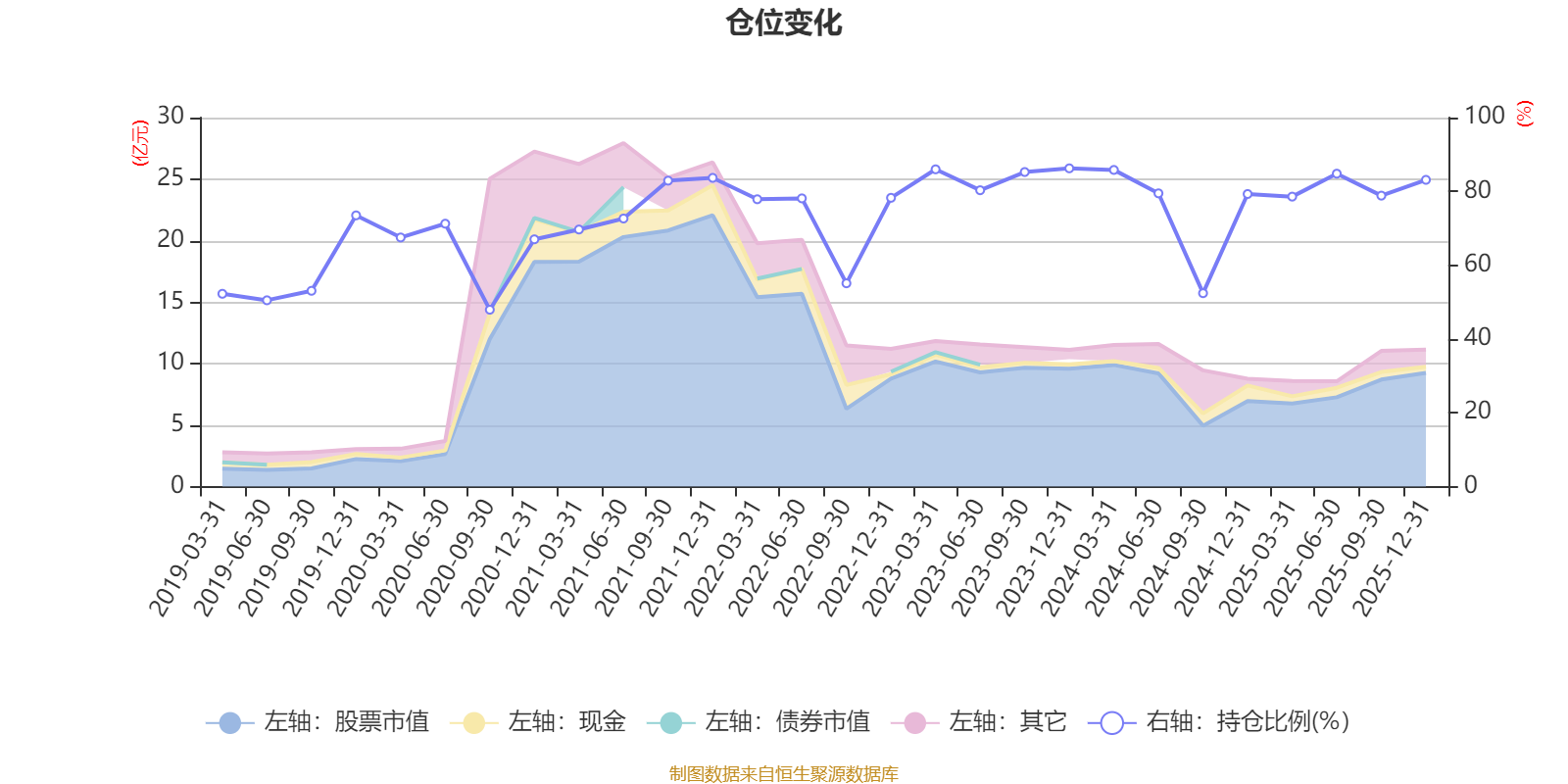 据定期报告数据统计,近三年平均股票仓位为80.01%,同类平均为72.57%。2023年末基金达到86.25%的最高仓位,2020年三季度末最低,为47.93%。