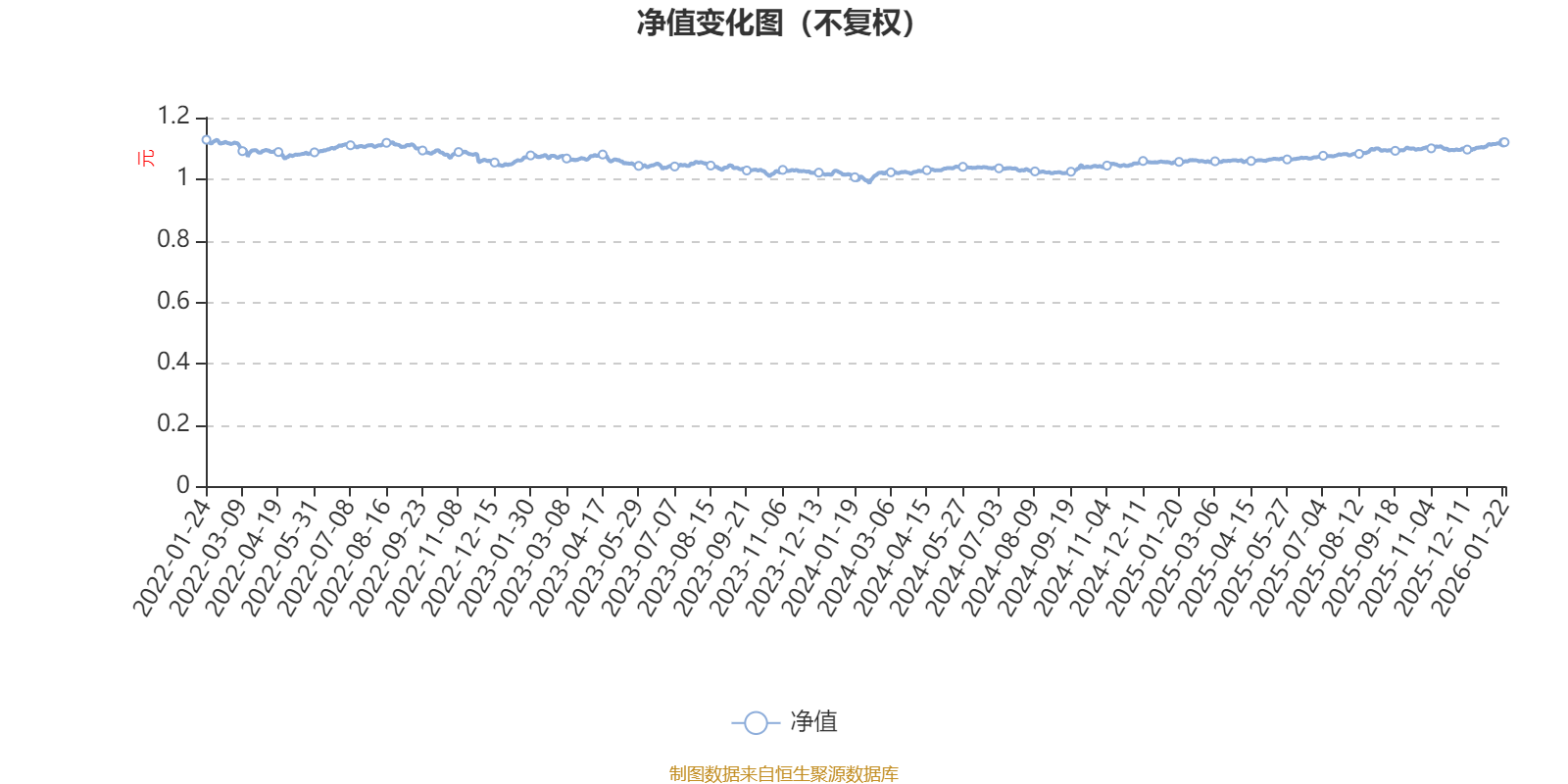 该基金属于偏债混合型基金。截至1月22日,单位净值为1.12元。基金经理是贺剑,目前管理8只基金。其中,截至1月22日,天弘安康颐丰一年持有期混合A近一年复权单位净值增长率最高,达9.91%;天弘安康颐利混合A最低,为2%。