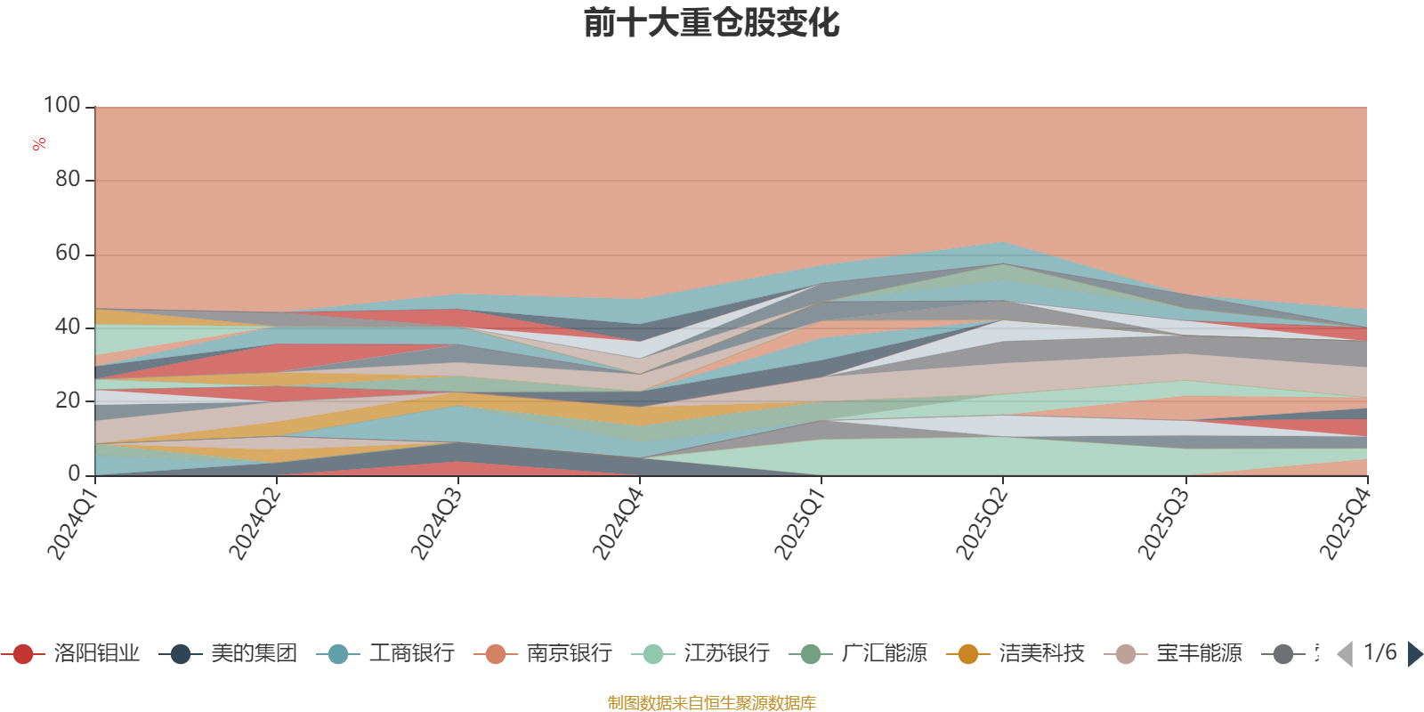 截至2025年四季度末,基金十大重仓股分别是紫金矿业、华泰证券、神火股份、云铝股份、南京银行、中国移动、厦门钨业、江苏银行、中航沈飞、招商积余。