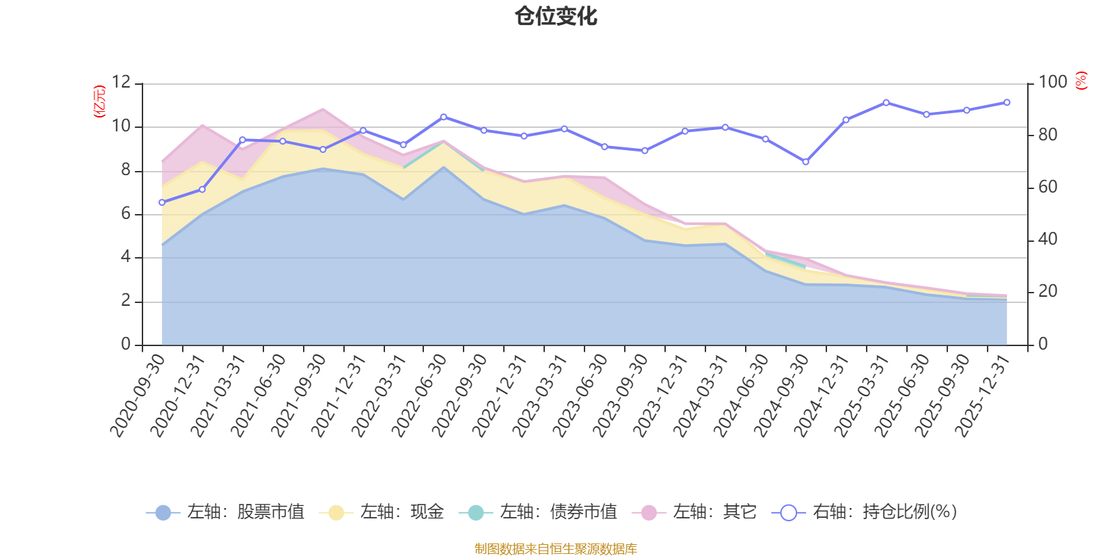 据定期报告数据统计,近三年平均股票仓位为82.99%,同类平均为72.57%。2025年末基金达到92.75%的最高仓位,2020年三季度末最低,为54.52%。