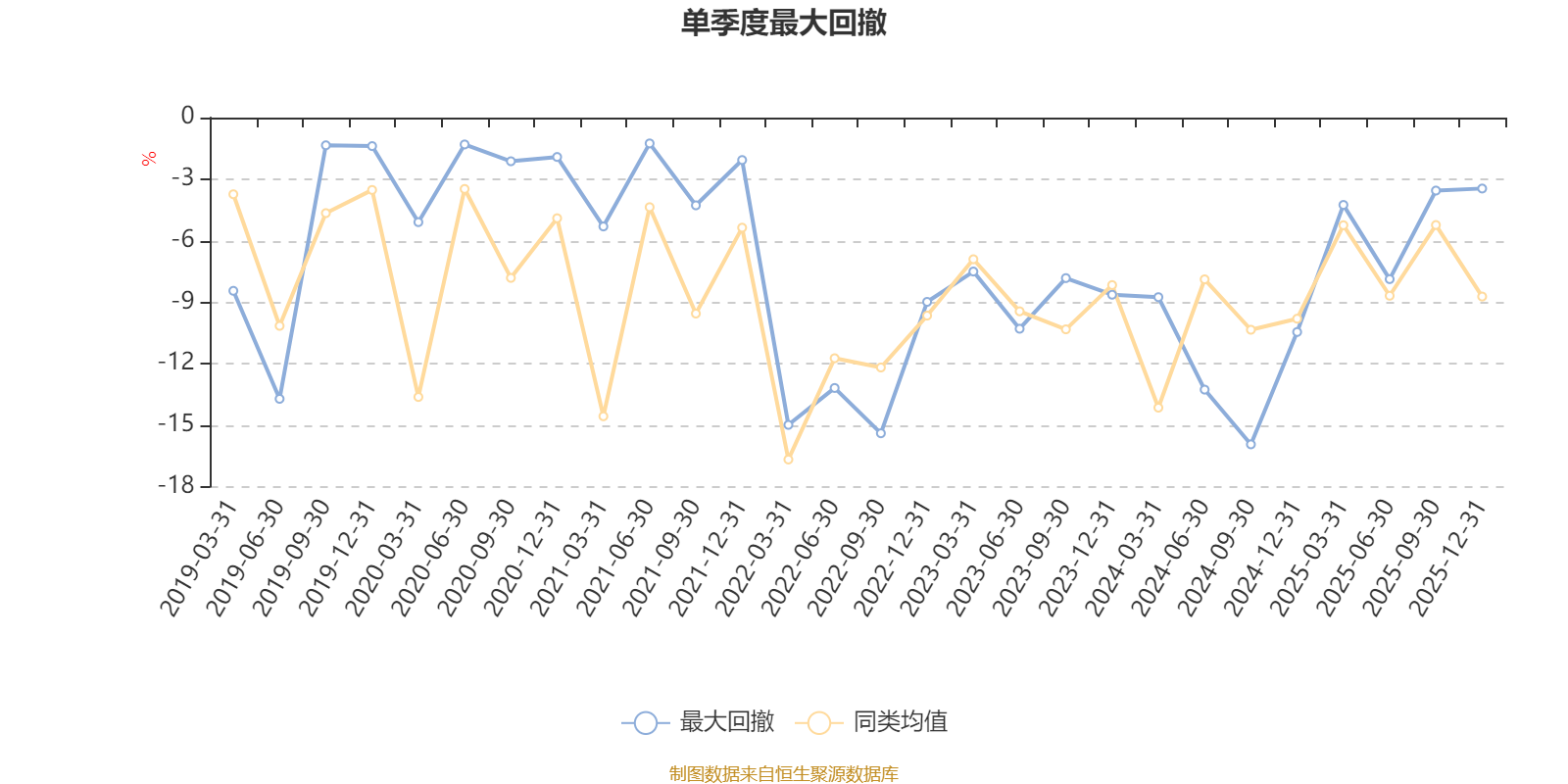 截至1月22日,基金近三年最大回撤为25.59%,同类可比基金排名402/1264。单季度最大回撤出现在2024年三季度,为15.94%。