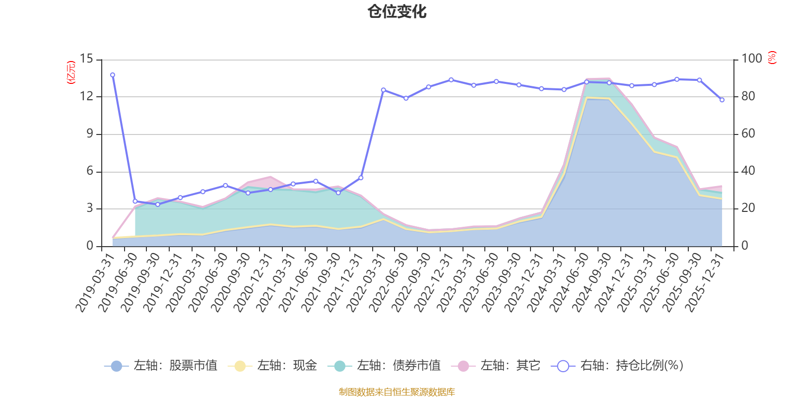 据定期报告数据统计,近三年平均股票仓位为86.2%,同类平均为72.57%。2019年一季度末基金达到91.8%的最高仓位,2019年三季度末最低,为22.45%。