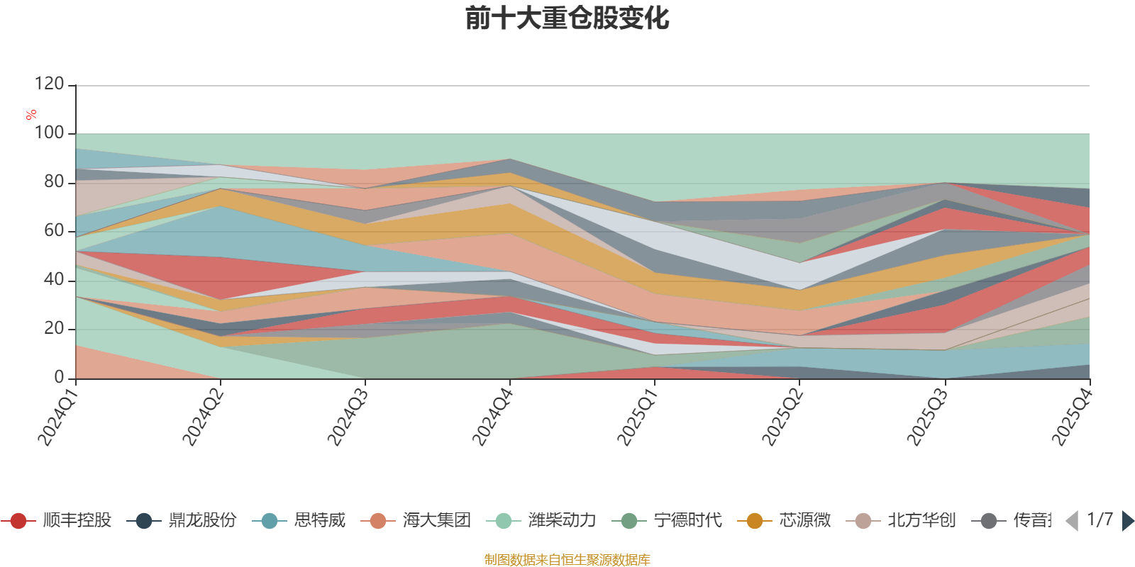 该基金持股集中度较高,近2年前十大重仓股集中度长期超过60%。截至2025年四季度末,基金十大重仓股分别是中国平安、宁德时代、思特威、中国太保、川恒股份、北方华创、三一重工、安集科技、鼎龙股份、新天然气。