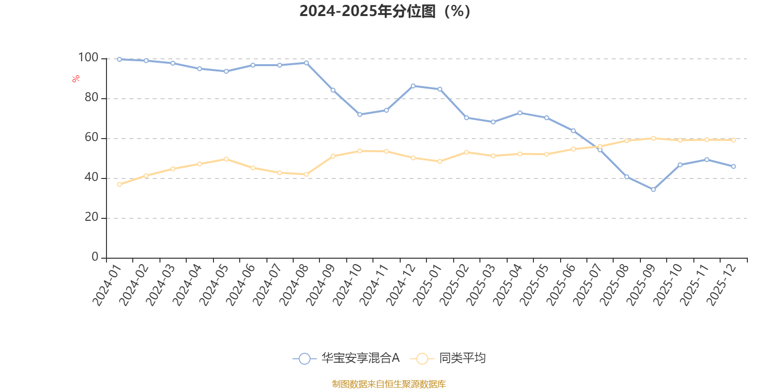 通过所选区间该基金净值增长率分位图,可以观察该基金与同类基金业绩比较情况。图为坐标原点到区间内某时点的净值增长率在同类基金中的分位数。
