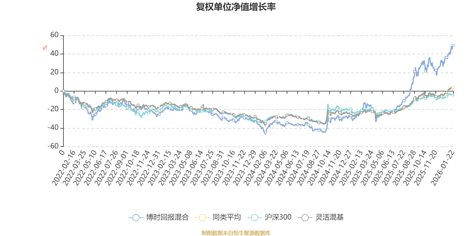截至1月22日,博时回报混合近三个月复权单位净值增长率为17.04%,位于同类可比基金207/1286;近半年复权单位净值增长率为66.85%,位于同类可比基金54/1286;近一年复权单位净值增长率为100.48%,位于同类可比基金16/1286;近三年复权单位净值增长率为84.58%,位于同类可比基金53/1286。