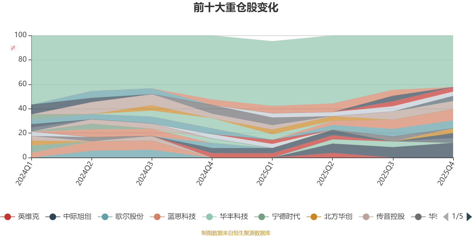 截至2025年四季度末,基金十大重仓股分别是中际旭创、新易盛、立讯精密、工业富联、源杰科技、兆易创新、金盘科技、深科技、长芯博创、阿里巴巴-W。
