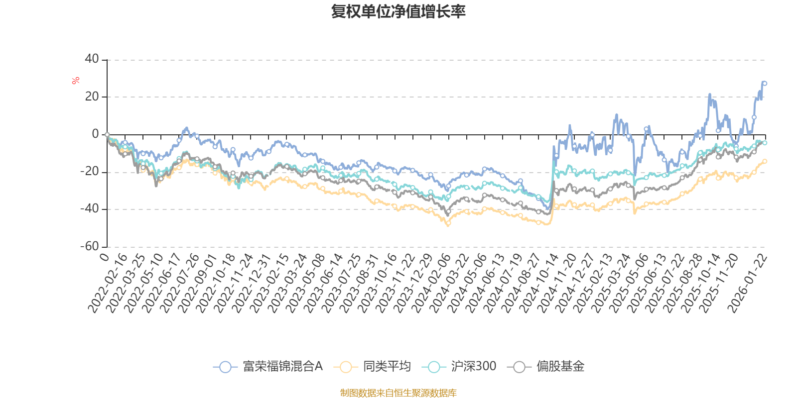 截至1月22日,富荣福锦混合A近三个月复权单位净值增长率为19.94%,位于同类可比基金82/689;近半年复权单位净值增长率为40.36%,位于同类可比基金120/689;近一年复权单位净值增长率为28.70%,位于同类可比基金455/673;近三年复权单位净值增长率为31.74%,位于同类可比基金108/396。