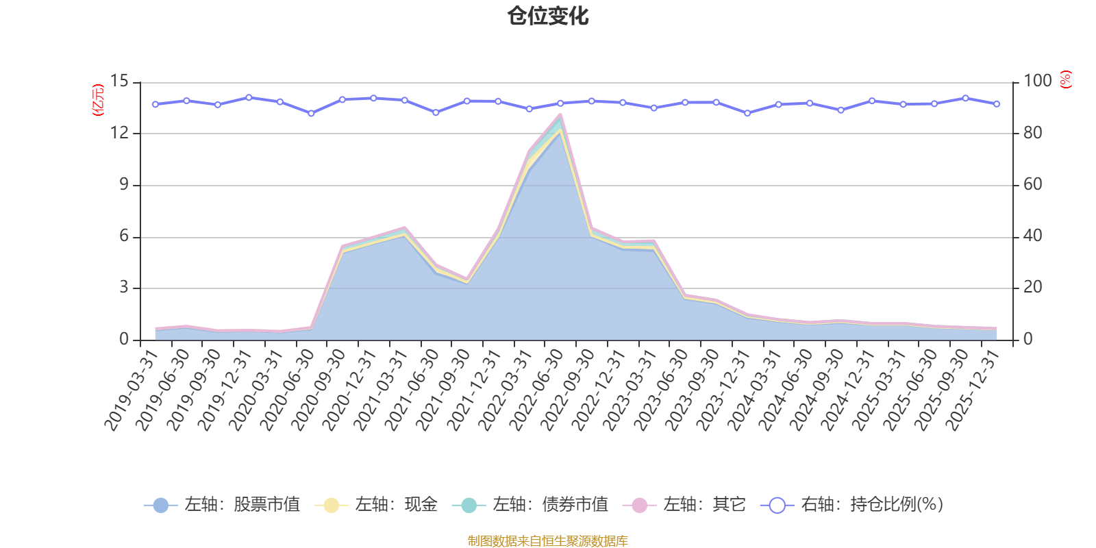 据定期报告数据统计,近三年平均股票仓位为91.34%,同类平均为84.04%。2019年末基金达到94.08%的最高仓位,2020年上半年末最低,为87.93%。