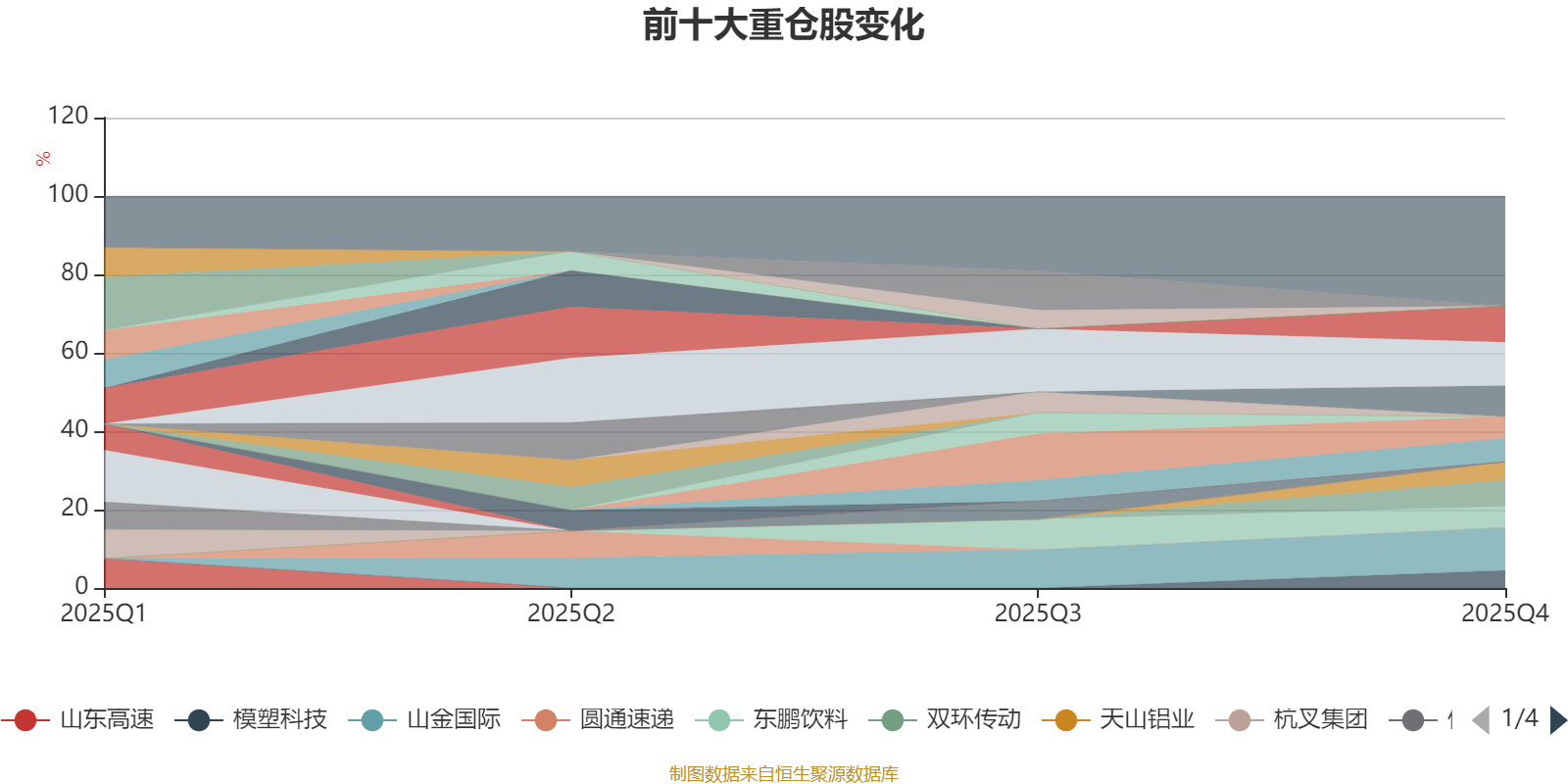 该基金持股集中度较高。截至2025年四季度末,基金十大重仓股分别是格力电器、山金国际、中国平安、国泰海通、双环传动、嘉益股份、紫金矿业、东鹏饮料、天山铝业、模塑科技。