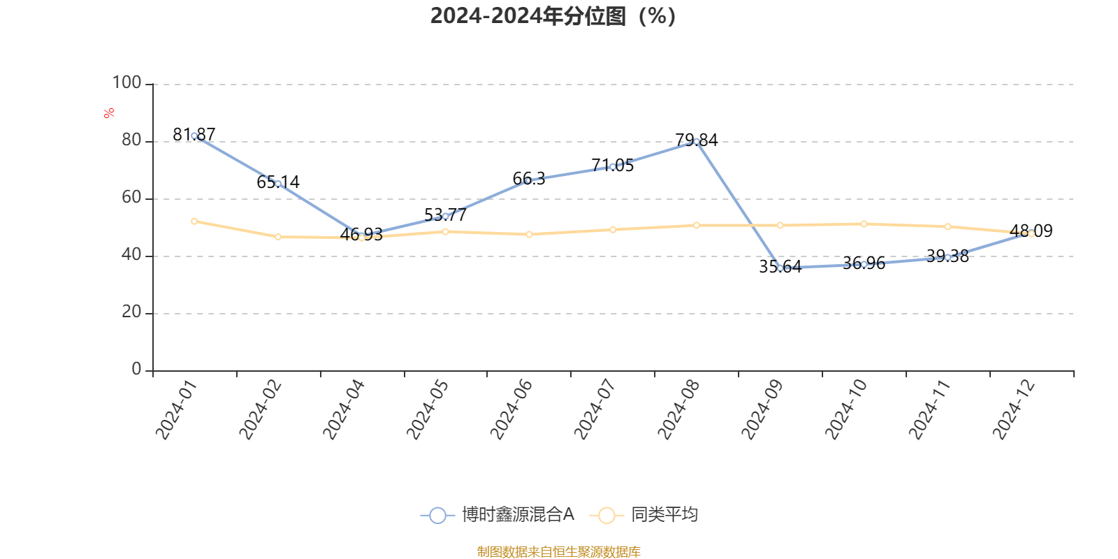通过所选区间该基金净值增长率分位图,可以观察该基金与同类基金业绩比较情况。图为坐标原点到区间内某时点的净值增长率在同类基金中的分位数。