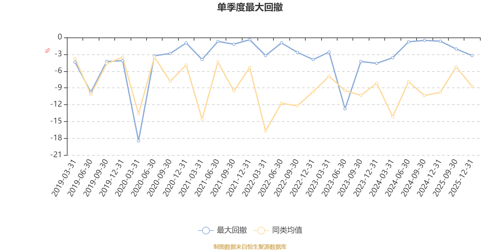 截至1月22日,基金近三年最大回撤为19.94%,同类可比基金排名272/1264。单季度最大回撤出现在2020年一季度,为18.44%。