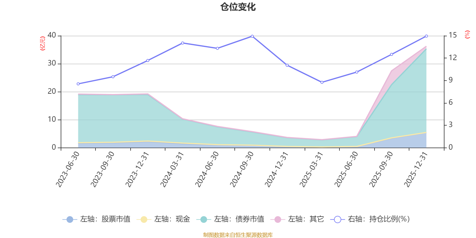 据定期报告数据统计,成立以来平均股票仓位为11.76%,同类平均为19.2%。2025年末基金达到14.95%的最高仓位,2023年上半年末最低,为8.55%。
