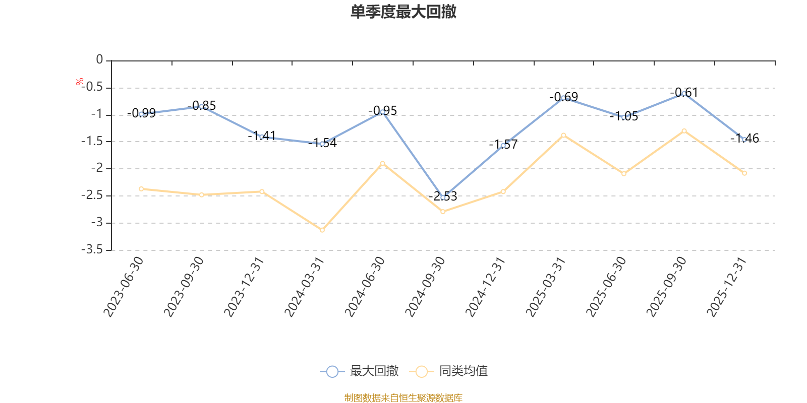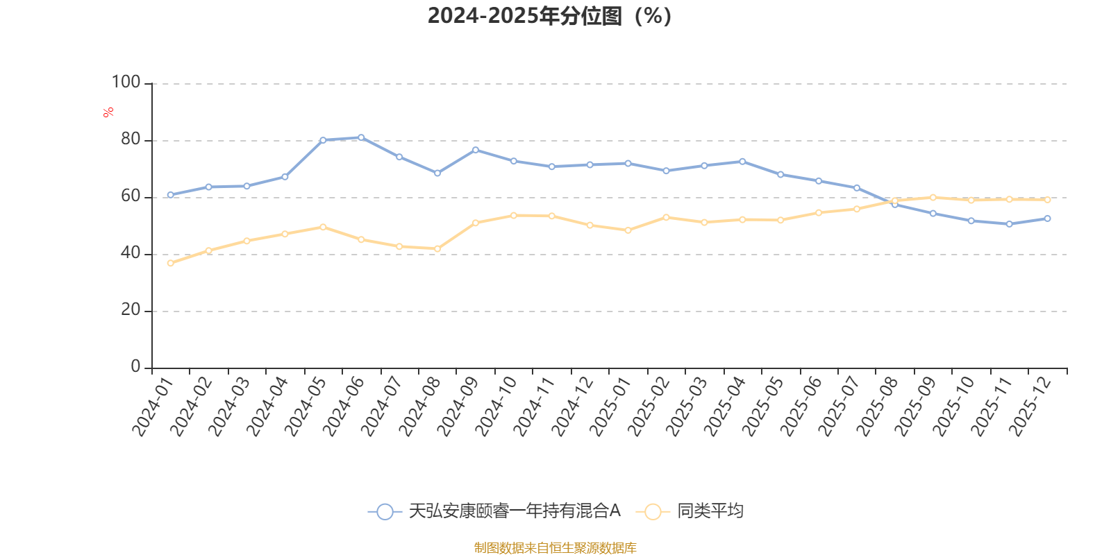 通过所选区间该基金净值增长率分位图,可以观察该基金与同类基金业绩比较情况。图为坐标原点到区间内某时点的净值增长率在同类基金中的分位数。