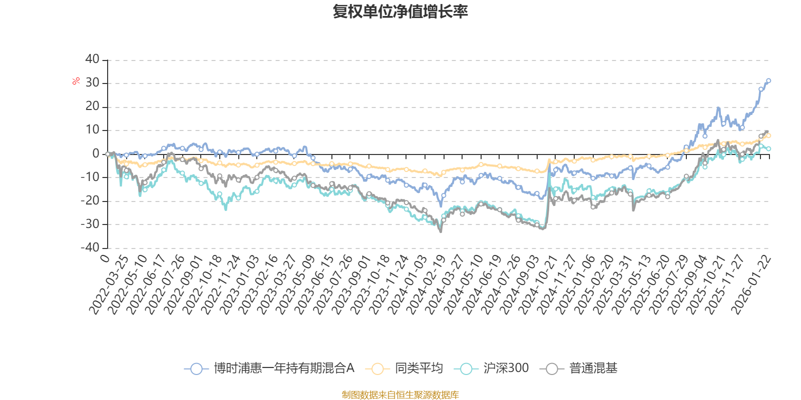 截至1月22日,博时浦惠一年持有期混合A近三个月复权单位净值增长率为16.07%,位于同类可比基金8/629;近半年复权单位净值增长率为31.30%,位于同类可比基金4/629;近一年复权单位净值增长率为44.56%,位于同类可比基金2/626;近三年复权单位净值增长率为28.38%,位于同类可比基金36/564。