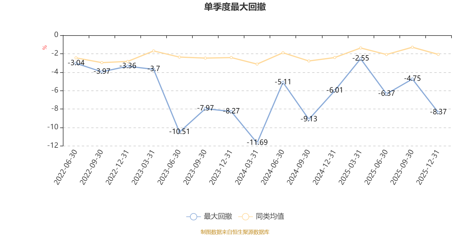 截至1月22日,基金近三年最大回撤为25.09%,同类可比基金排名519/527。单季度最大回撤出现在2024年一季度,为11.69%。
