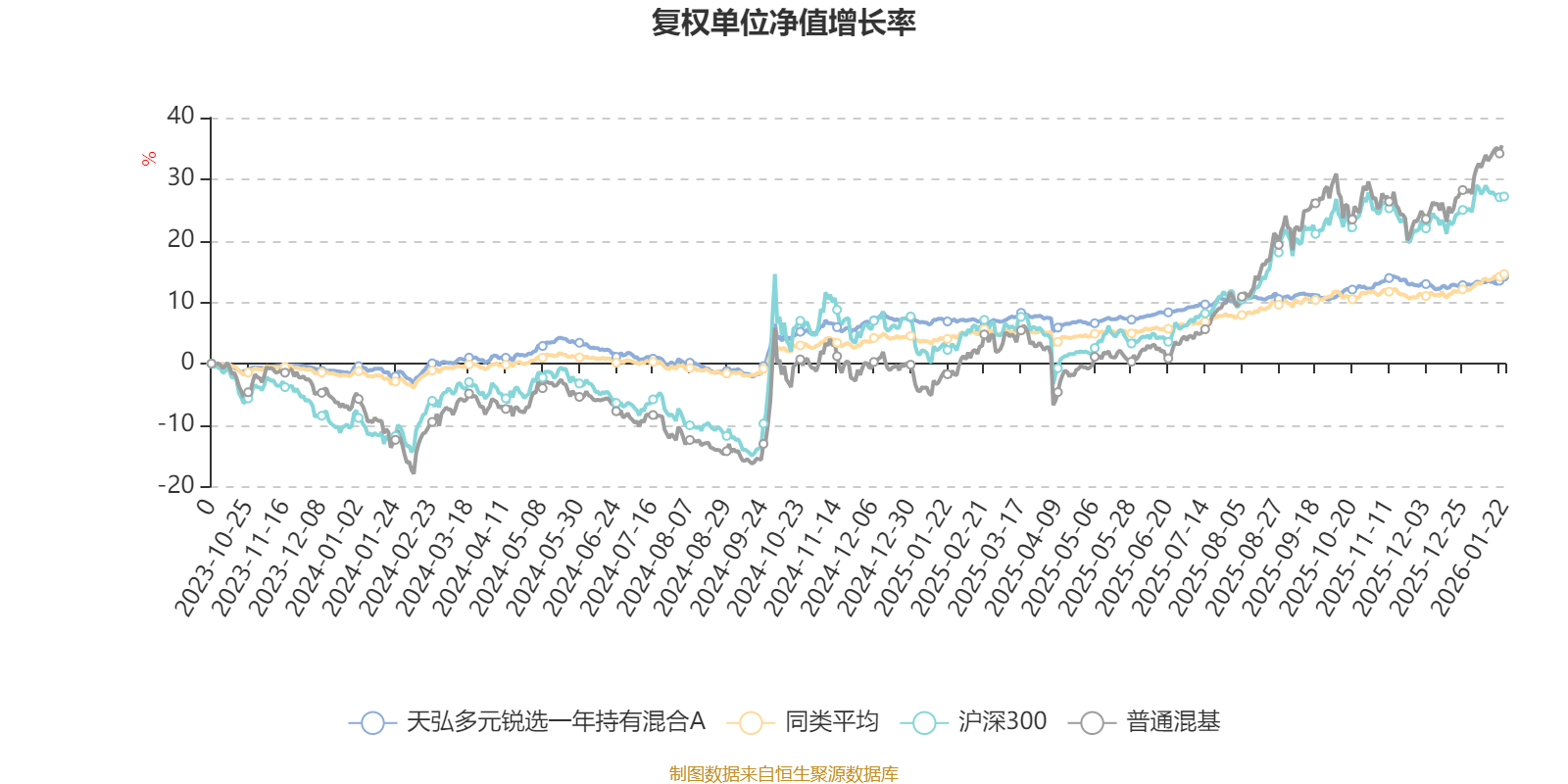 截至1月22日,天弘多元锐选一年持有混合A近三个月复权单位净值增长率为1.62%,位于同类可比基金405/629;近半年复权单位净值增长率为3.04%,位于同类可比基金428/629;近一年复权单位净值增长率为6.80%,位于同类可比基金365/626。