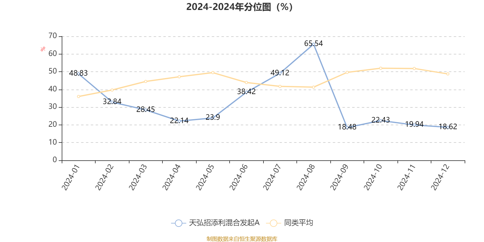 通过所选区间该基金净值增长率分位图,可以观察该基金与同类基金业绩比较情况。图为坐标原点到区间内某时点的净值增长率在同类基金中的分位数。