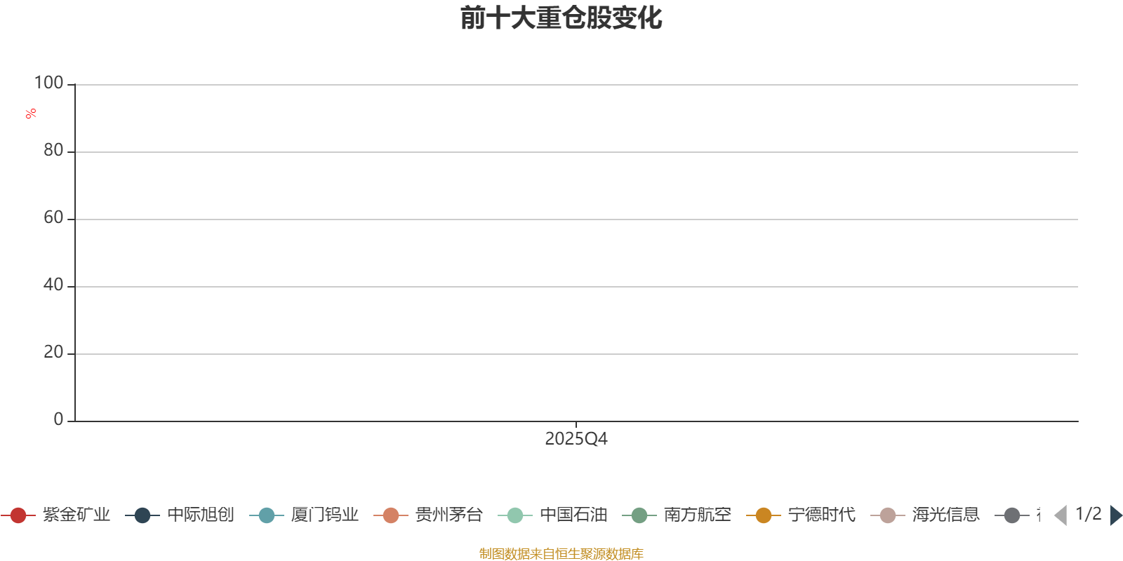 该基金持股集中度较高。截至2025年四季度末,基金十大重仓股分别是中国石油、紫金矿业、中际旭创、海光信息、宁德时代、贵州茅台、神马电力、厦门钨业、南方航空、道通科技。