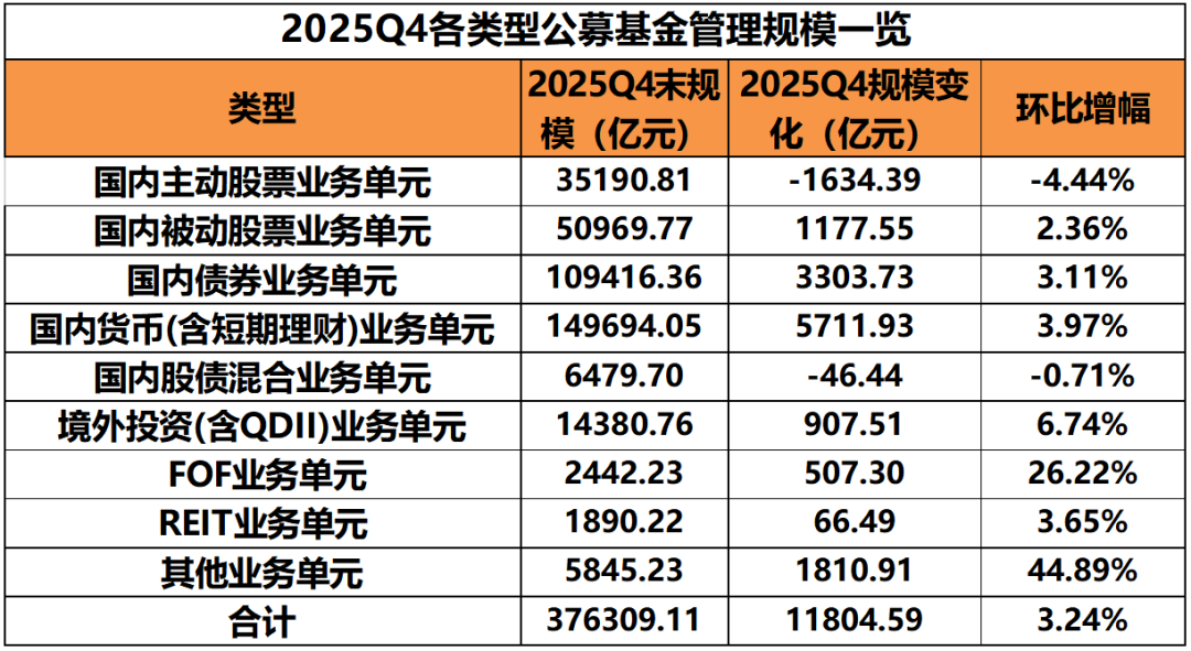 【导读】2025年第四季度公募非货规模出炉,权益类基金规模稳健增长